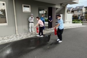 午後からは、介護職員を中心に避難訓練を入居者様と行いました。